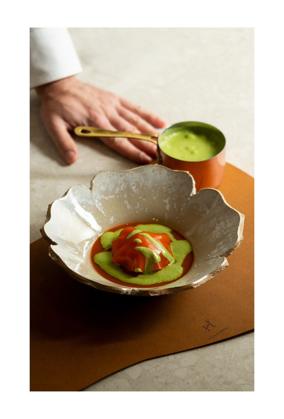 Mon client m’a confié la création de l’identité visuelle complète de son restaurant gastronomique Harmonie, situé à Villeneuve-d’Ascq, avec la volonté de traduire visuellement l’âme du lieu et la sensibilité culinaire du chef étoilé Mathieu Boutroy. L’enjeu était de concevoir un univers à la fois raffiné, apaisant, sincère et en cohérence avec sa cuisine d’instinct, tournée vers l’émotion, le respect du produit et la mise en valeur du terroir.